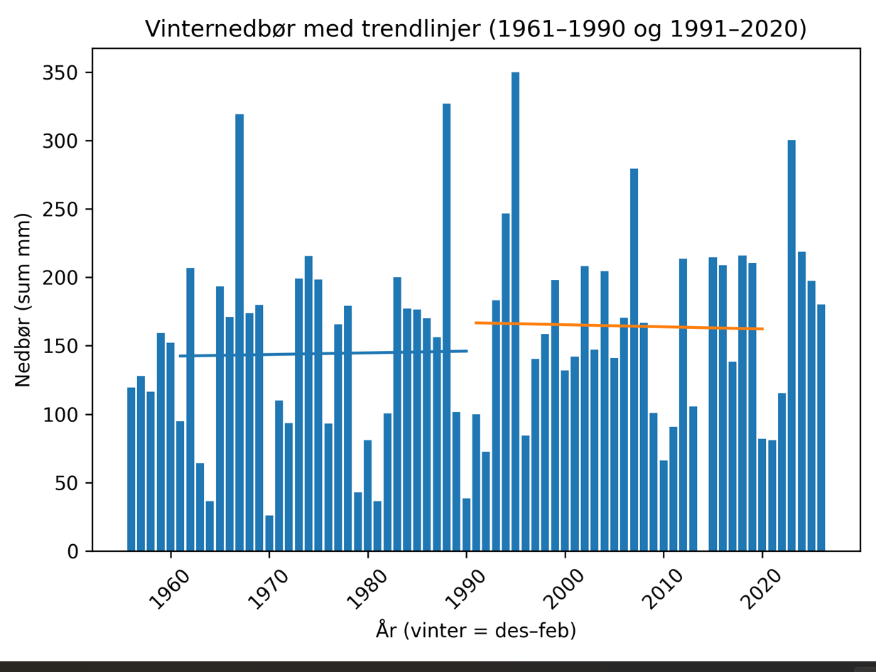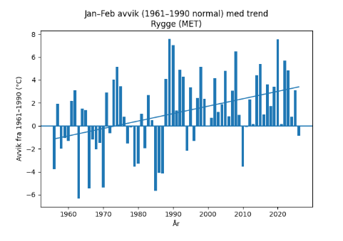 – Selv om januar og februar har vært kaldere enn normalt, var førjulstiden i 2025 alt annet enn vinterlig. Dessuten er trenden klar: Norge blir varmere, sier klimaforsker Hans Olav Hygen til met.no.
